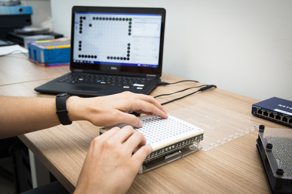 BlindPAD è il primo prototipo di tavoletta tattile con giochi educativi in grado di far percepire alle persone non vedenti e ipovedenti informazioni grafiche sotto forma di stimolazioni tattili, rendendo possibile la comprensione di concetti astratti, come figure geometriche e mappe di luoghi. Il prototipo nasce da un progetto europeo coordinato da IIT ed è stato realizzato attraverso la continua interazione con persone con disabilità visive e specialisti della riabilitazione, grazie alla partnership con l’Istituto David Chiossone Onlus di Genova ed enti di ricerca svizzeri, ungheresi tedeschi e polacchi. Può essere già usato come ausilio nei centri di riabilitazione visiva e, in futuro, potrà trasformarsi in una piattaforma riabilitativa portatile da usare negli ambienti scolastici e domestici.