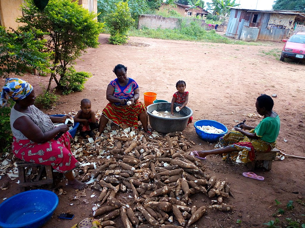 Immagine - 1 - Donne africane che preparano i tuberi della tapioca - Credits By Chidinma0025 [CC BY-SA 4.0 (https://creativecommons.org/licenses/by-sa/4.0)], (Original file) from Wikimedia Commons.